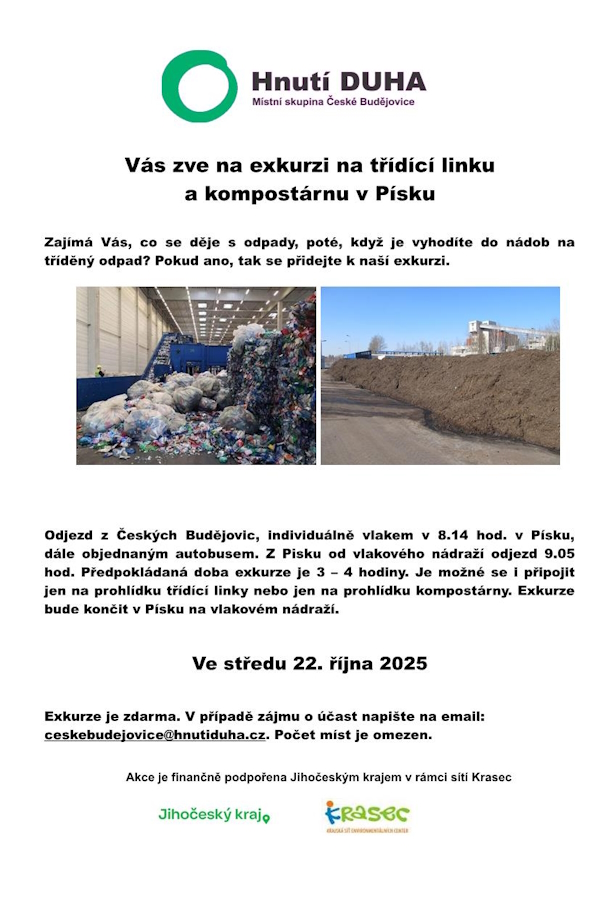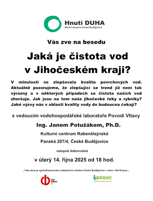 Hnutí DUHA, místní skupina České budějovice vás zve na besedu Jaká je čistota vod v Jihočeském kraji?
