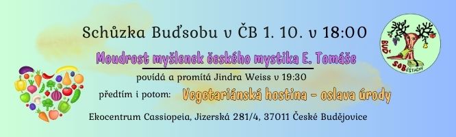 - bude probíhat přednáška o moudrosti myšlenek českého mystika Eduarda Tomáše a budou m.j. promítnuty též ukázky z filmu Viliama Poltikoviče Šťastny, ať jsou všechny bytosti. Téma si pro nás připravil Jindra Weiss.
