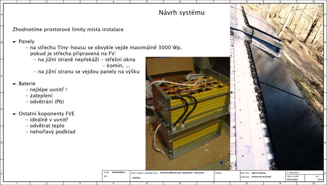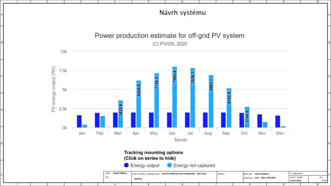 To praktické, co potřebujeme vědět je, že panely dokážou vyrobit stejnosměrný proud a napětí. Vyrábí ho podle toho jak svítí, významně rozdílně v létě a v zimě. Podstatné je jejich množství (nominální výkon), sklon a orientace ke světovým stranám. K detailnímu popisu zákonitostí zapojení se snad někdy dostanu v jiném článku. Pokud jde o celkový výkon potřebný pro vaši instalaci, o tom ještě bude řeč níže. Jak vidíte z obrázku, panely jsou jen špička ledovce celého systému. A na závěr ještě odpověď na jednu častou otázku. Co se stane s elektřinou, když je baterie už nabitá a energii není kam dávat? V tuto chvíli regulátor zastaví nabíjení. Proud, který do teď tekl z panelů do baterie se zastaví a napětí na panelech mírně vzroste. Energie, ze které by panel vyrobil elektřinu, zůstane v podobě tepla, takže je povrch panelu o něco teplejší. Tím je učiněno za dost zákonu o zachování energie.