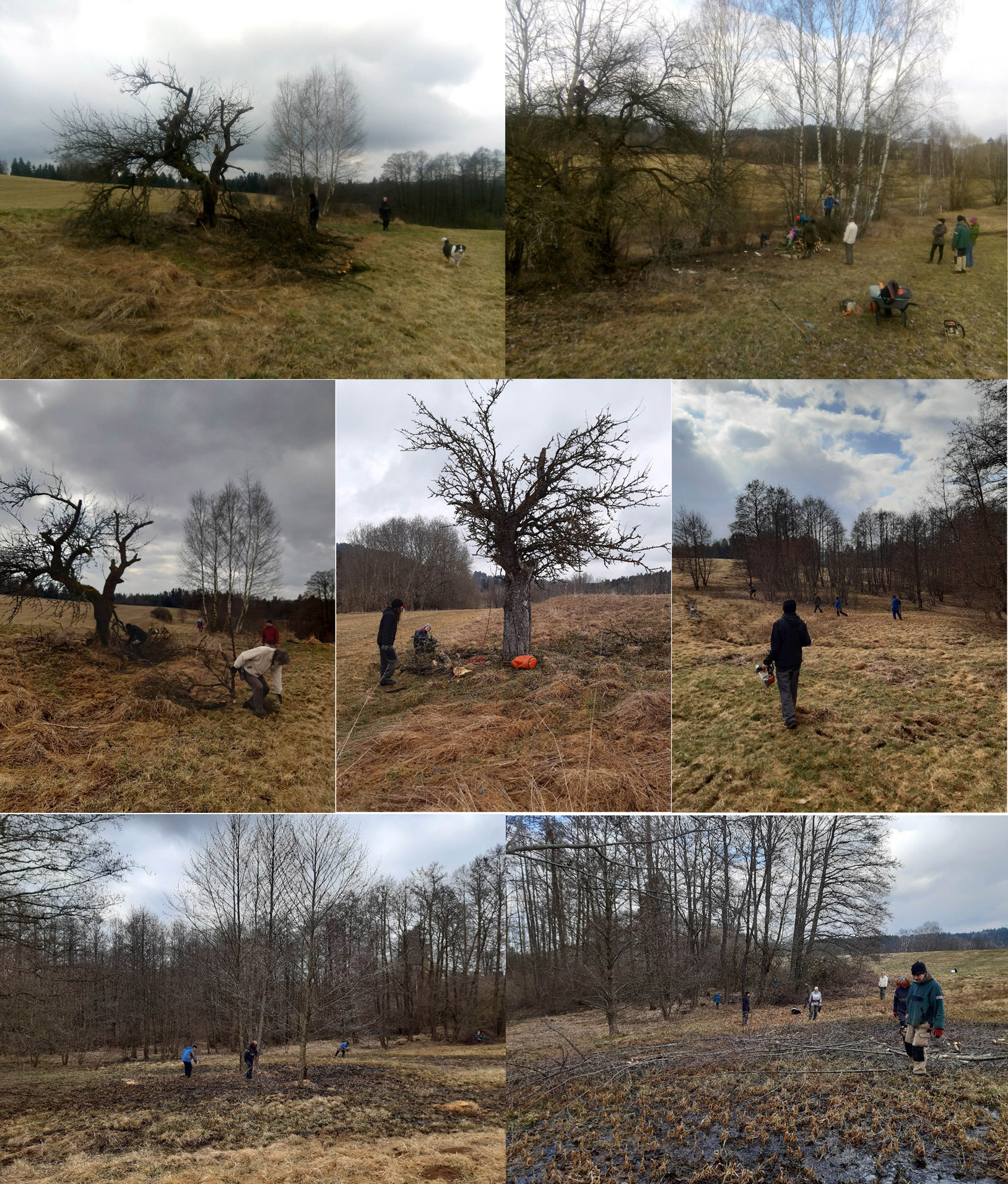 Letos jsme měli vyhlídnutou mez se starými jabloněmi, kterým jsme doposud nevěnovali žádnou péči. Po mezí jsme pak prosvětlili mokřad, kde rostou orchideje a další zajímavá květena. Ku pomoci, především s odklízením vyřezaných větví, přispěla pěkná řádka Buďsobáků. Vše šlo jako na drátku, v radostné náladě začínajícího jara. Všem velké díky!